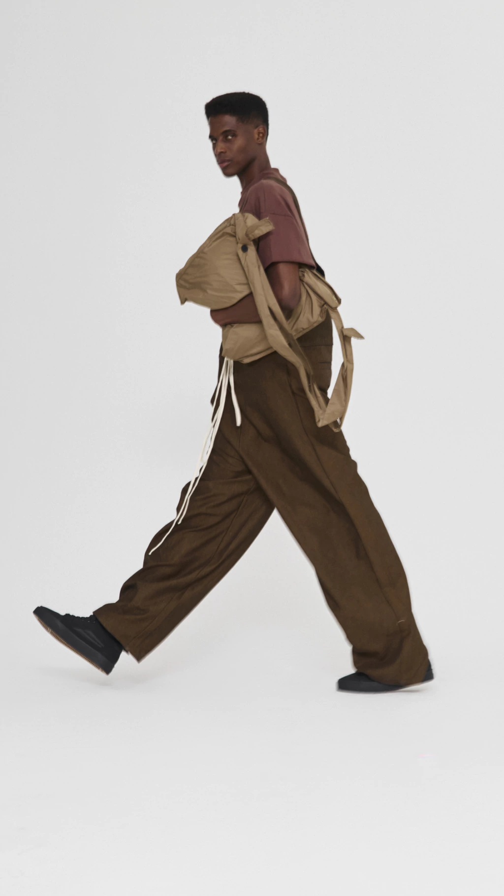 Macacão oversized confeccionado em jeans de algodão Vicunha. Bolsos nas laterais e detalhe de bolsos atrás. Cintura elástica ajustável em corda natural.